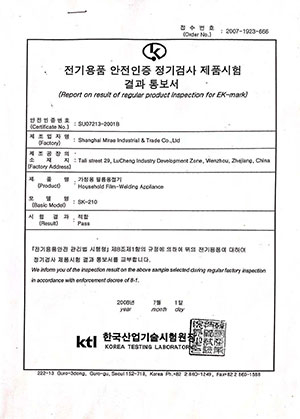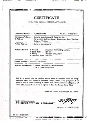 Korean Sealing Machine Certification