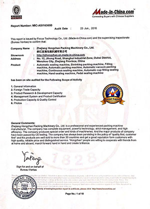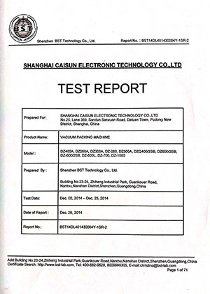 Vacuum Packaging Machine Certification Report