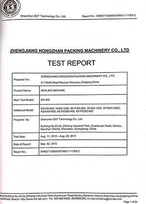 Sealing Machine Certification Report