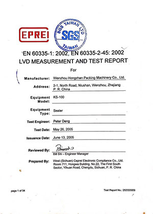 Hand Sealing Machine Certification Report