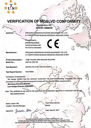 اجتازت الشركة شهادة نظام إدارة الجودة ISO9001، وحصلت آلة ختم المنتج الرئيسية على شهادة CE المجتمع الأوروبي.